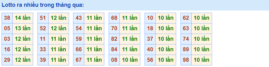 - Cặp 38 với 14 lần về trong tháng qua