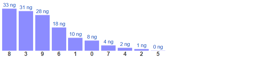 Thống kê cho thấy tổng lâu chưa xuất hiện nhất là tổng 8 (bao gồm 10 cặp số: 08, 17, 26, 35, 44, 53, 62, 71, 80, 99) đã 33 ngày chưa ra.