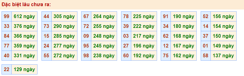 - Cặp 99 với 612 ngày chưa về giải đặc biệt