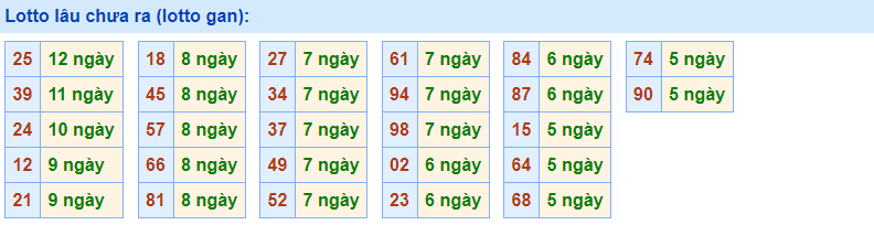 - Cặp số 25 đã 12 ngày chưa ra, cực đại là 24 ngày (từ 05/02/2013 đến 28/02/2013)