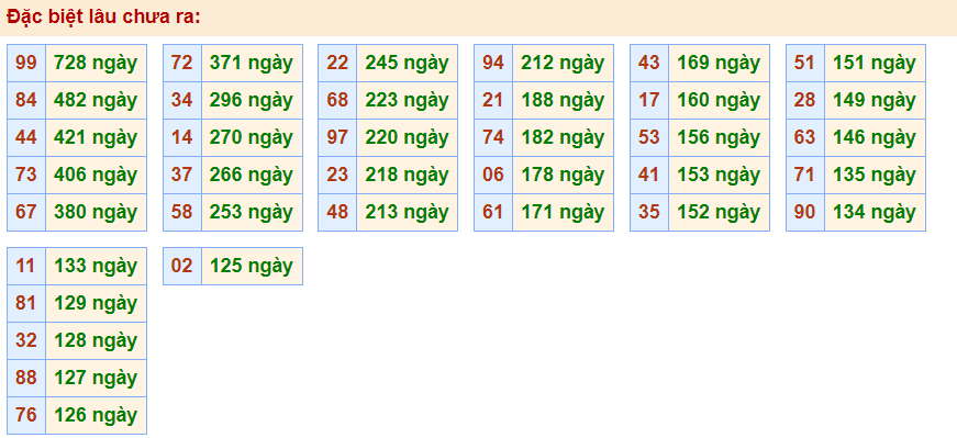 • Cặp 99 với 728 ngày chưa về giải đặc biệt