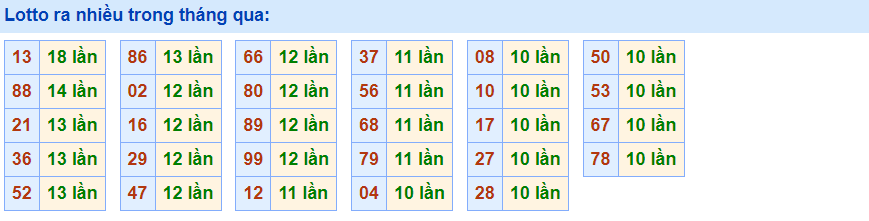 • Cặp 13 với 18 lần về trong tháng qua