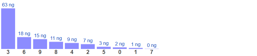 Thống kê cho thấy tổng lâu chưa xuất hiện nhất là tổng 3 (bao gồm 10 cặp số: 03, 12, 21, 30, 49, 58, 67, 76, 85, 94) đã 63 ngày chưa ra.
