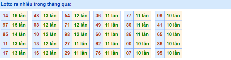 • Cặp 14 với 16 lần về trong tháng qua