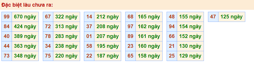 • Cặp 99 với 670 ngày chưa về giải đặc biệt