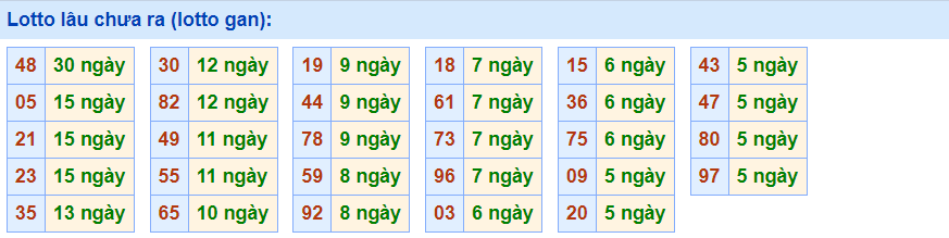 • Cặp 30 với 12 ngày chưa về