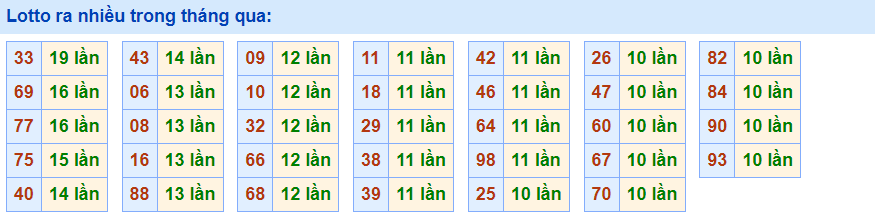 • Cặp 69 với 16 lần về trong tháng qua