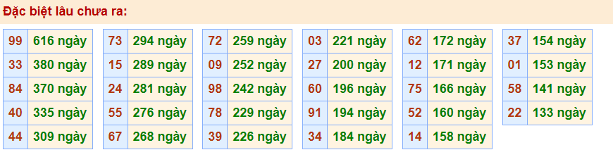 - Cặp 99 với 616 ngày chưa về giải đặc biệt