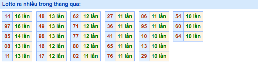 - Cặp 85 với 14 lần về trong tháng qua