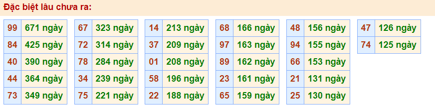 - Cặp 99 với 671 ngày chưa về giải đặc biệt