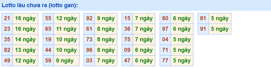- Cặp số 21 đã 16 ngày chưa ra, cực đại là 28 ngày (từ 07/05/2016 đến 03/06/2016)