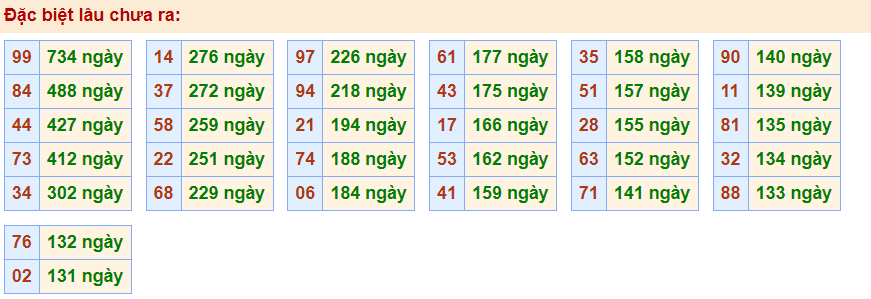 - Cặp 99 với 734 ngày chưa về giải đặc biệt