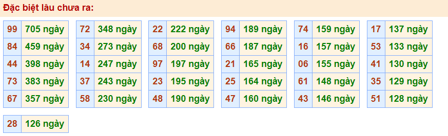 • Cặp 99 với 705 ngày chưa về giải đặc biệt