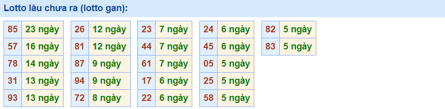 • Cặp 85 với 23 ngày chưa về