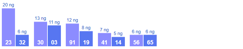 - Cặp số 23 đã 20 ngày chưa ra, cực đại là 29 ngày (từ 13/04/2008 đến 11/05/2008)