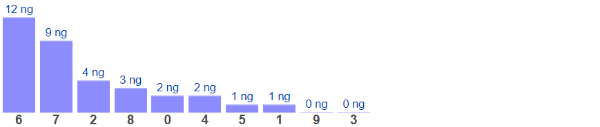 Thống kê cho thấy chạm lâu chưa xuất hiện nhất là chạm 6 (bao gồm 19 cặp số có chứa số 6), đã 12 ngày chưa ra.