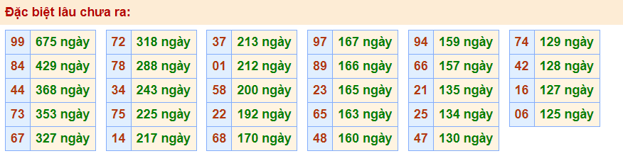 - Cặp 99 với 675 ngày chưa về giải đặc biệt