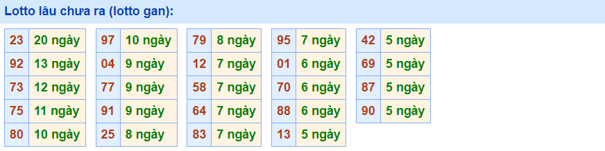- Cặp số 23 đã 20 ngày chưa ra, cực đại là 29 ngày (từ 13/04/2008 đến 11/05/2008)