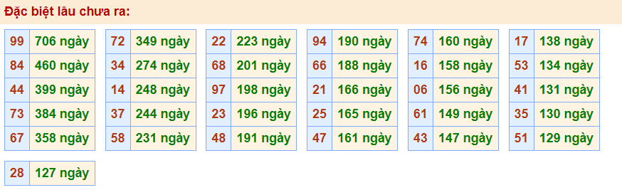 - Cặp 99 với 706 ngày chưa về giải đặc biệt