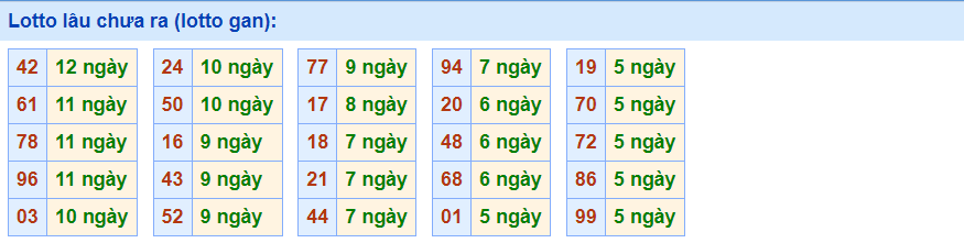 • Cặp 42 với 12 ngày chưa về