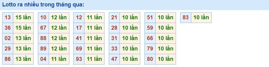 • Cặp 02  với 13 lần về trong tháng qua