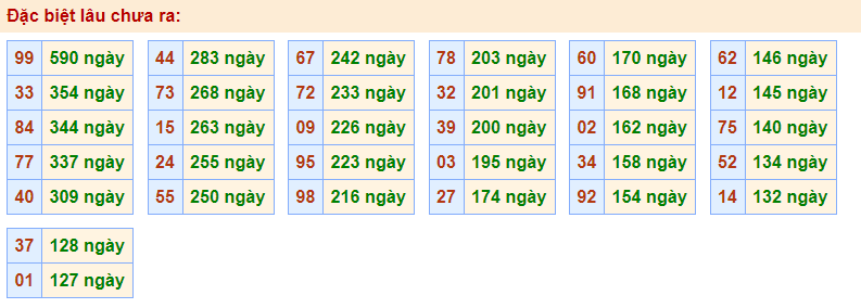 - Cặp 99 với 590 ngày chưa về giải đặc biệt