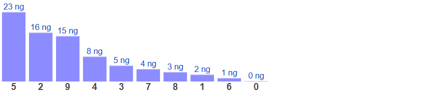 Thống kê cho thấy tổng llâu chưa xuất hiện nhất là tổng 5 (bao gồm 10 cặp số: 05, 14, 23, 32, 41, 50, 69, 78, 87, 96) đã 23 ngày chưa ra.