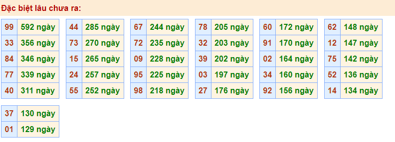 - Cặp 99 với 592 ngày chưa về giải đặc biệt