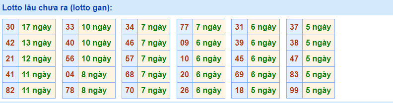 - Cặp số 30 đã 17 ngày chưa ra, cực đại là 29 ngày (từ 07/09/2015 đến 05/10/2015)