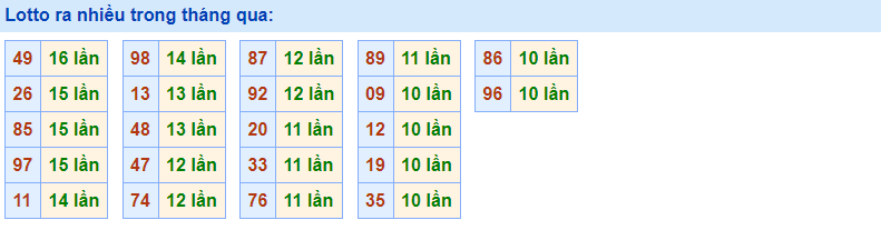- Cặp 49 với 16 lần về trong tháng qua