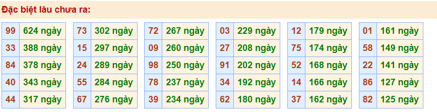 - Cặp 99 với 624 ngày chưa về giải đặc biệt