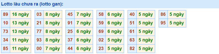 - Cặp số 89 đã 16 ngày chưa ra, cực đại là 31 ngày (từ 08/07/2009 đến 07/08/2009)