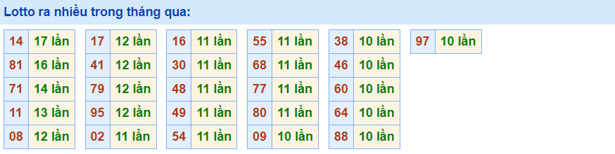 - Loto được chơi nhiều ngày 28-01-2021: 57 – 14 – 41 – 79 – 26 – 28 – 68 – 82 – 51 – 58 – 62 – 86 – 97 – 38 – 45 – 75 – 85 – 88 – 11 – 15