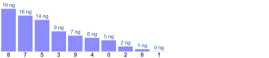 Thống kê cho thấy tổng lâu chưa xuất hiện nhất là tổng 8 (bao gồm 10 cặp số: 08, 17, 26, 35, 44, 53, 62, 71, 80, 99) đã 19 ngày chưa ra.