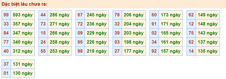- Cặp 99 với 593 ngày chưa về giải đặc biệt
