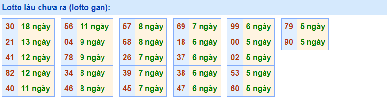 - Cặp số 30 đã 18 ngày chưa ra, cực đại là 29 ngày (từ 07/09/2015 đến 05/10/2015)
