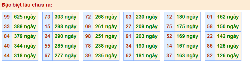 • Cặp 99 với 625 ngày chưa về giải đặc biệt