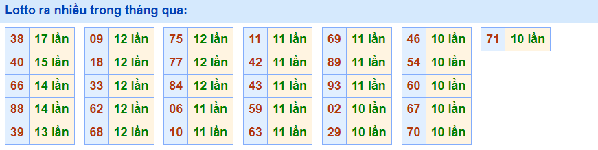 • Cặp 38 với 17 lần về trong tháng qua