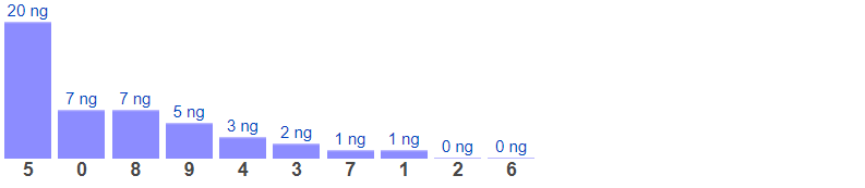 Thống kê cho thấy chạm lâu chưa xuất hiện nhất là chạm 5 (bao gồm 19 cặp số có chứa số 5), đã 20 ngày chưa ra.