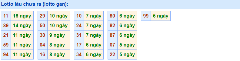 - Cặp số 11 đã 16 ngày chưa ra, cực đại là 27 ngày (từ 25/06/2018 đến 21/07/2018)