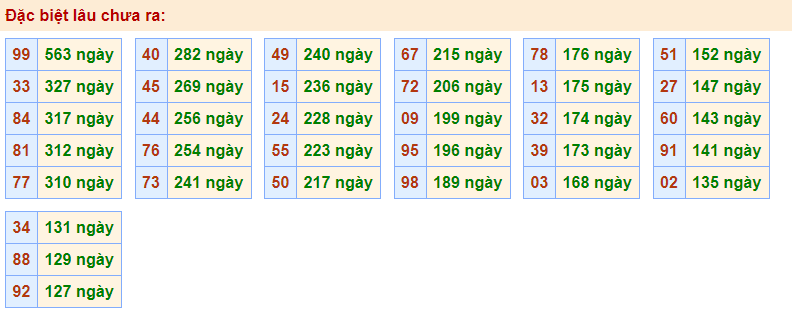- Cặp 99 với 563 ngày chưa về giải đặc biệt