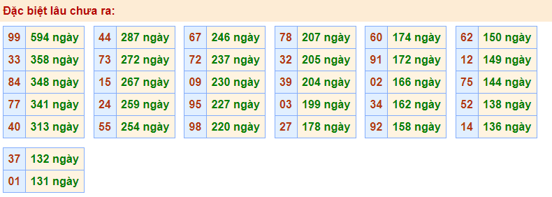 - Cặp 99 với 594 ngày chưa về giải đặc biệt