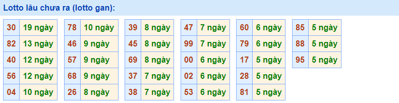 - Cặp 85 với 14 lần về trong tháng qua