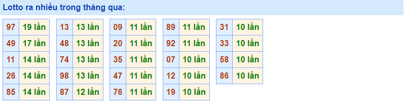 - Cặp 97 với 19 lần về trong tháng qua