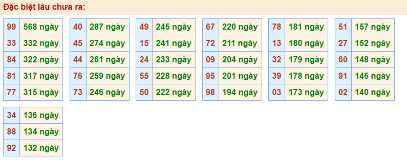 • Cặp 99 với 568 ngày chưa về giải đặc biệt