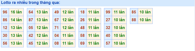 • Cặp 96 với 16 lần về trong tháng qua