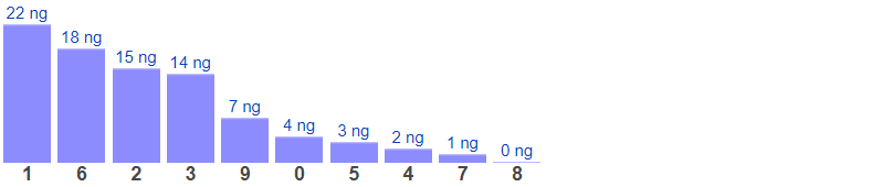 Thống kê cho thấy chạm lâu chưa xuất hiện nhất là chạm 5 (bao gồm 19 cặp số có chứa số 5), đã 25 ngày chưa ra.