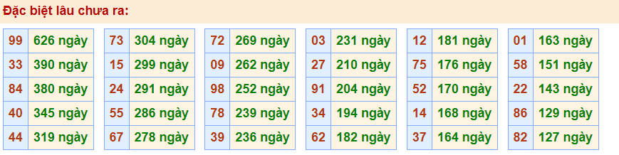 - Cặp 99 với 626 ngày chưa về giải đặc biệt
