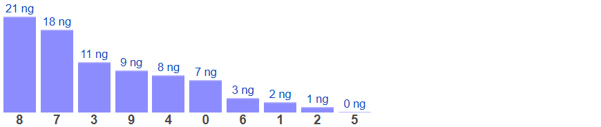 Thống kê cho thấy tổng llâu chưa xuất hiện nhất là tổng 8 (bao gồm 10 cặp số: 08, 17, 26, 35, 44, 53, 62, 71, 80, 99) đã 21 ngày chưa ra.
