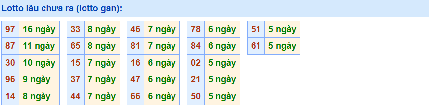 - Cặp số 97 đã 16 ngày chưa ra, cực đại là 25 ngày (từ 29/04/2018 đến 23/05/2018)